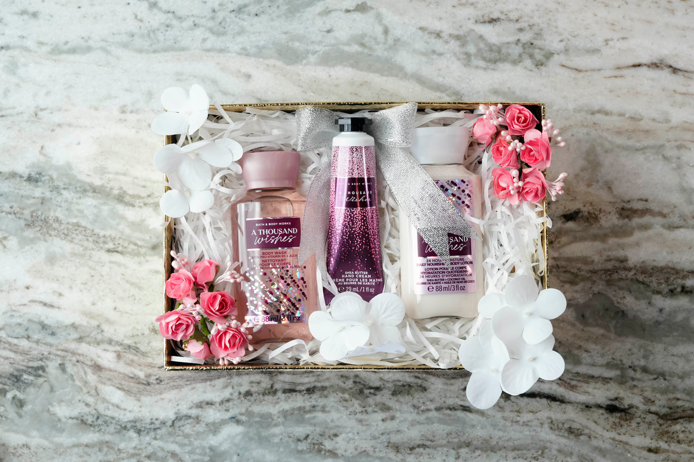 Indulge in luxury with this Bath & Body Works Thousand Wishes collection. Featuring shower gel, moisturizer, and hand cream in their iconic sparkling champagne and crystal peony scent, beautifully presented in an elegant gold gift box. Perfect for pampering yourself or celebrating someone special with sophistication and style.